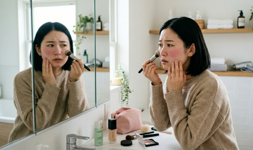三つ目は、乾燥による赤みです。バリア機能が低下した肌は、わずかな刺激でも敏感に反応し、赤みが出やすくなります。特に冬の乾燥でダメージを受けた肌が回復しきれないまま春を迎えると、敏感な状態が続きやすいです。