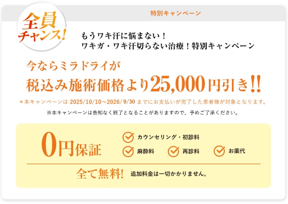 ミラドライでの治療を検討されている方は、ミラドライ治療の経験豊富な当院までお気軽にお問い合わせください。